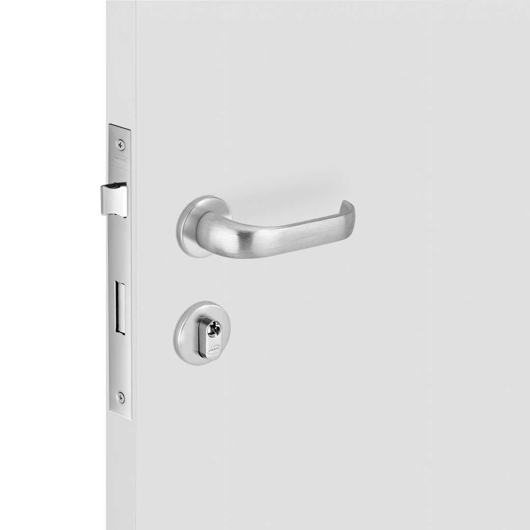 CONJUNTO DE FECHADURA DA LINHA PREMIUM DO MODELO DUNA MA0988 ,MATERIAL EM LATAO NO ACABAMENTO CROMO ACETINADO - CA , COMPOSTO DE ROSETA - 0066 EM LATAO , FECHADURA 1851 INTERNA COM DISTÂNCIA BROCA 55 MM